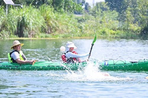 在天府农博园姚滩湿地,科旺水上运动中心引羊马河活水成湖,7.7万平方米的水域成为市民体验龙舟、皮划艇等项目的绝佳场所。在这里,22人座的龙舟项目,让市民游客既能感受同舟共济、奋楫争先的团队精神,又能领略“轻舸迎浪”的诗意;双人、三人皮划艇项目,则能满足游客的不同需求。
