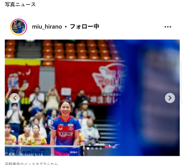 连续两届奥运会随队拿到乒乓球女团银牌的25岁日本名将平野美宇于当地时间4日更新Instagram,为上月主场开幕并斩获两连胜的T联赛征程表达感谢。平野美宇写道:"虽迟但谢,感谢各位对木下阿比尔神奈川主场开幕两连战的支持!两场比赛都鏖战至决胜局,多亏粉丝们的声援我们才能取得两连胜!"平野美宇还配发5张比赛照片。她最后表示:"赛季仍在继续,我们将团结一心,为实现队史首次两连冠而奋斗。请继续支持我们!"